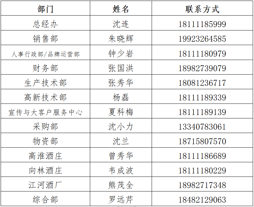 為了便于工作聯(lián)系,現(xiàn)將公司各部門(mén)聯(lián)系人聯(lián)系方式公布如下: