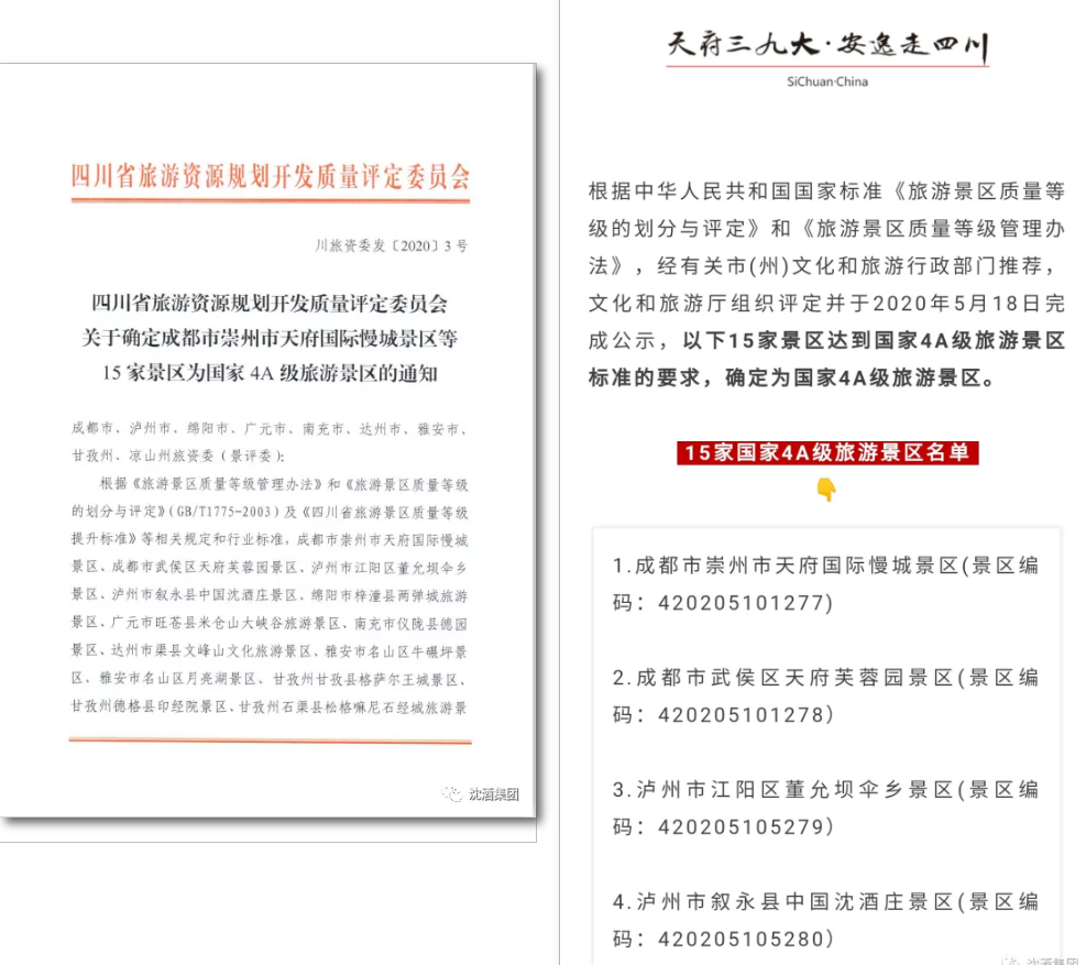 5月20日上午,中國沈酒集團的員工們從四川省文旅廳官方發(fā)布的鏈接與文件上得知了這個振奮人心的喜訊!從2018年正式啟動創(chuàng)建工作以來,中國沈酒集團的員工們在董事長沈鴻林的帶領(lǐng)下,擰成一股繩,向國家4A級旅游景區(qū)這個目標(biāo)堅持不懈地努力,今天終于得以實現(xiàn)。