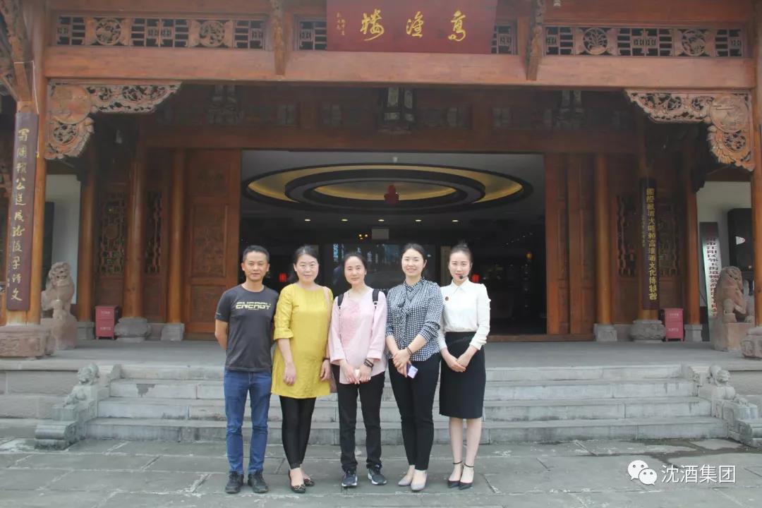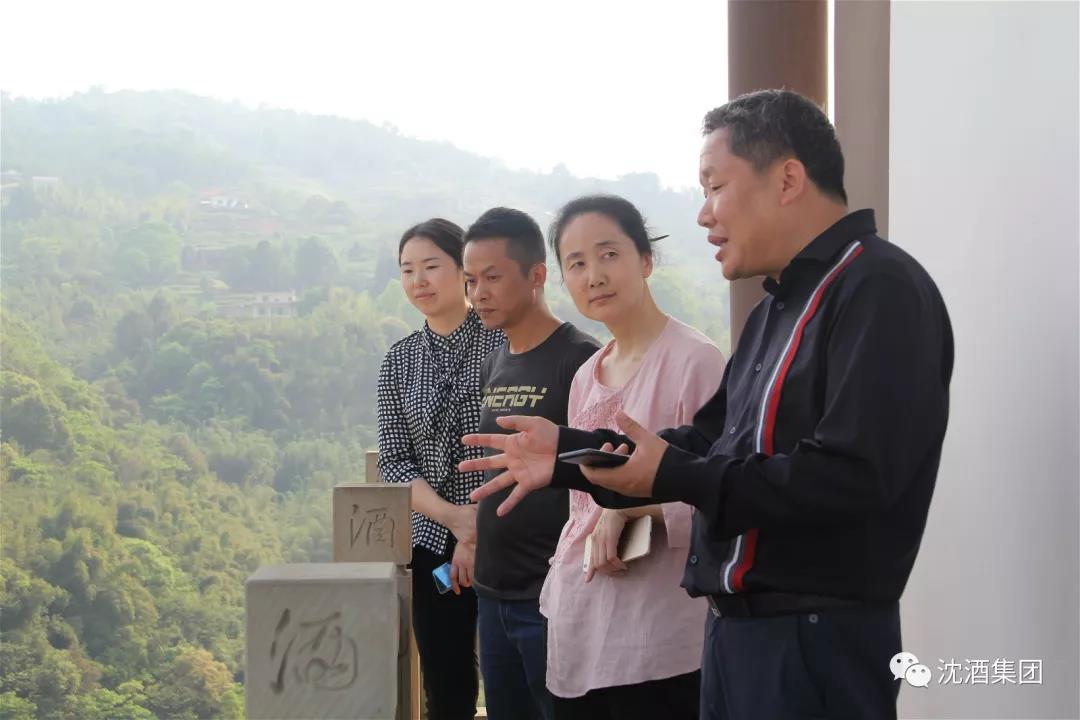 《人民政協(xié)報民營周刊》資深記者劉艷(右三)、四川省工商聯(lián)一級調(diào)研員劉靜(左二)、瀘州市工商聯(lián)宣調(diào)科科長柳楊(左一)考察調(diào)研沈子國酒莊,中國沈酒集團總經(jīng)理沈連(右二)陪同
